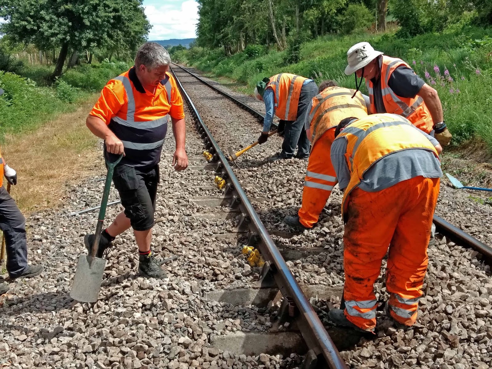 It's the diesel gala these three days, but nonetheless 6 of us turned up on the PWay to do some essential work on the track today. We could always watch the diesels from the lineside. And it was just as well we were there, as several track faults have suddenly been reported. It's most likely that these are related to the two month heatwave that we've been having.